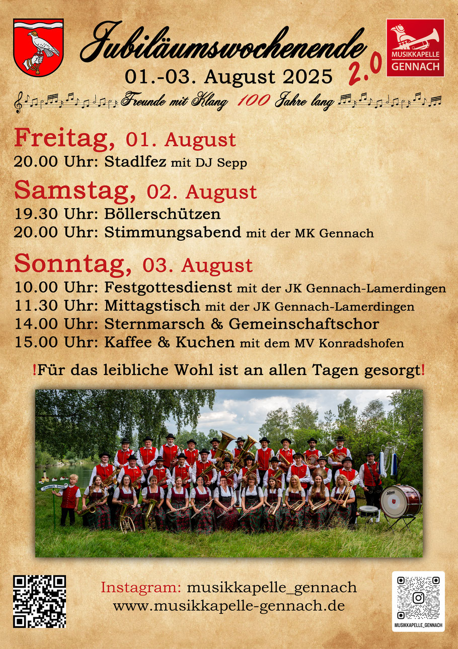 Unter diesem Motto feiern wir vom 04. bis 06. Juli 2025 unser 100jähriges Jubiläum im Rahmen eines Festwochenendes!